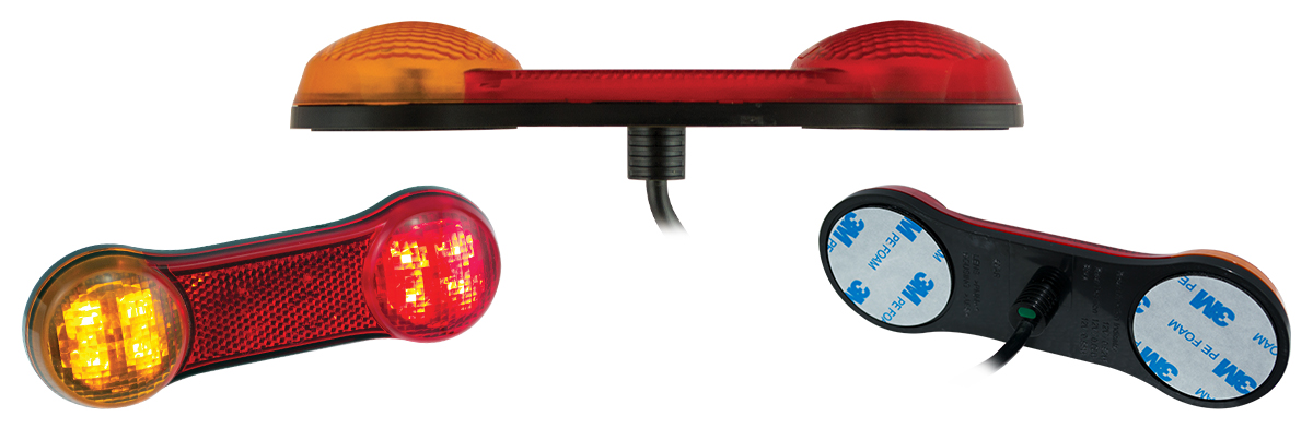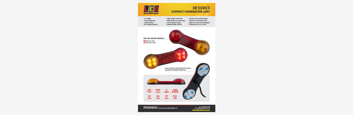 LED Autolamps' exclusively designed DB Series Compact Combination Lamp features a unique 'dog-bone' shape and combines Stop, Tail, Indicator and Reflector functions in a single, low-profile unit.