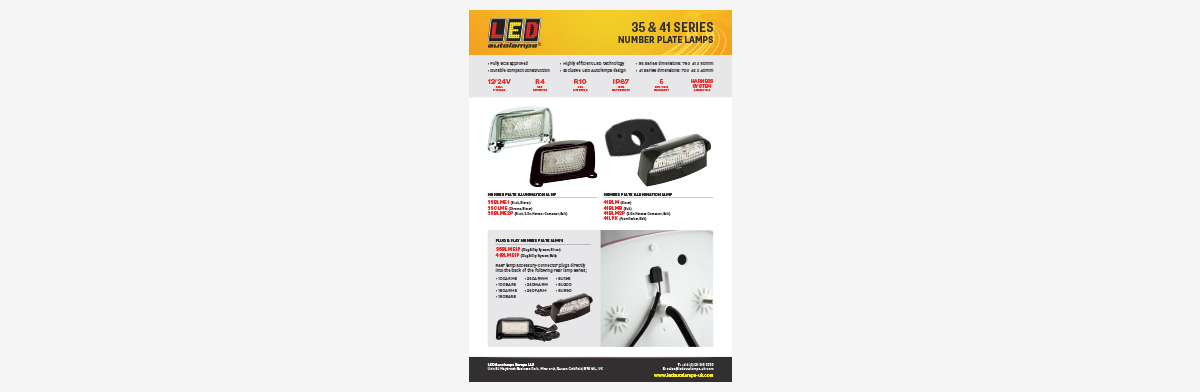 Our exclusively designed 35 & 41 Series Number Plate Lamps are among our best-selling products, thanks to their rugged durability and harness system compatibility.