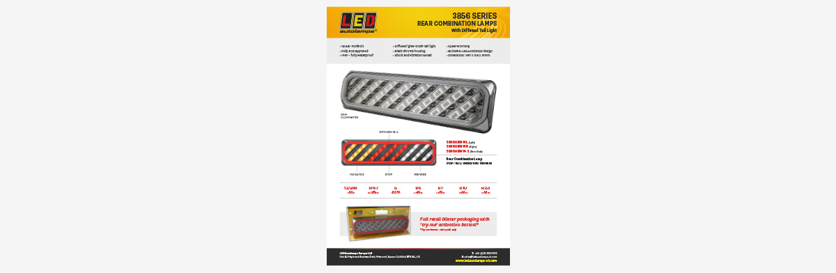 Exclusively designed, LED Autolamps' exciting new 3856 Series Rear Combination Lamps combine dynamic functionality with innovative styling.