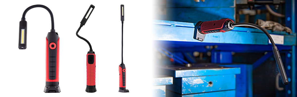 The HH420 boasts a long flexible neck designed to illuminate narrow, awkward spaces.