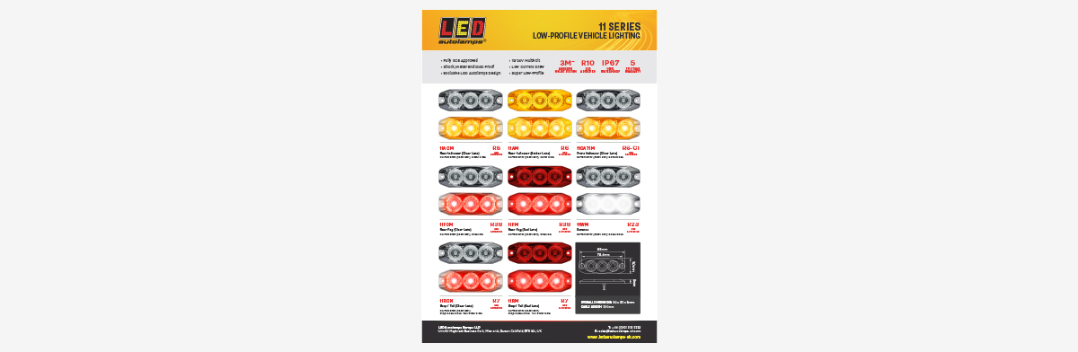 The 11 Series are exclusively designed by LED Autolamps to be among the smallest fully ECE approved lamps on the market, offering superior versatility of application and modern, inconspicuous styling.