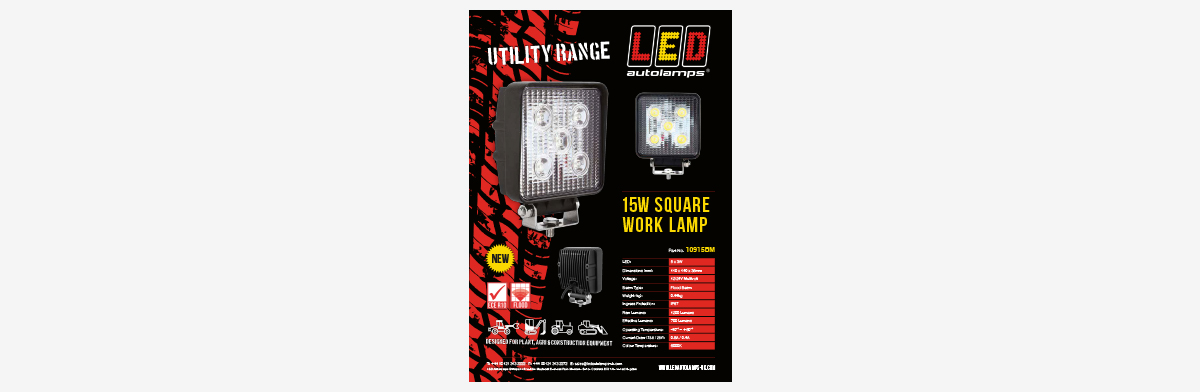 LED Autolamps exclusively designed the 10915BM 15W Square Work Lamp for use on agricultural and construction machinery and vehicles under our Utility Range brand.