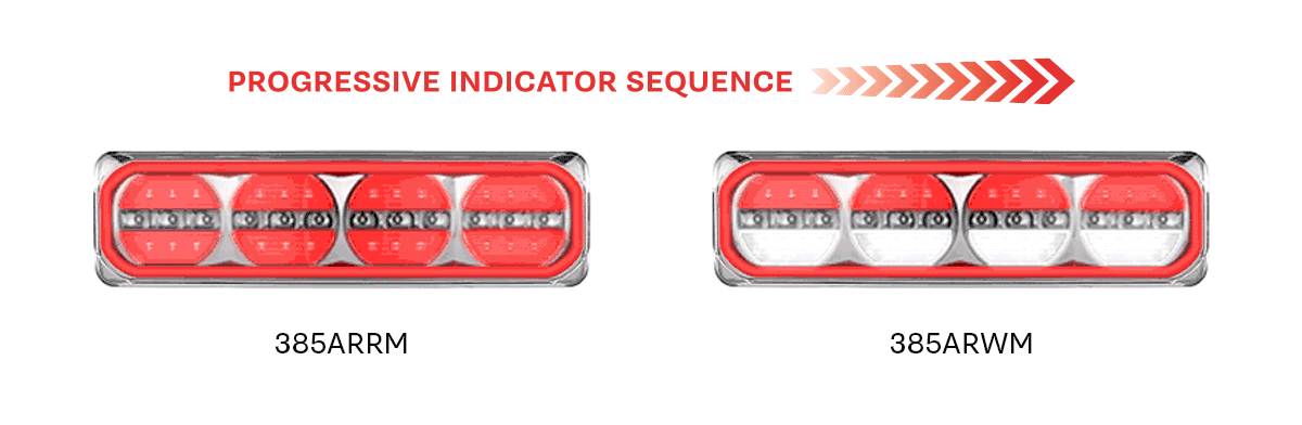 The 385 Series are available as a Stop, Tail and Indicator combination lamp or with an additional Reverse function. Each function is fully ECE certified.