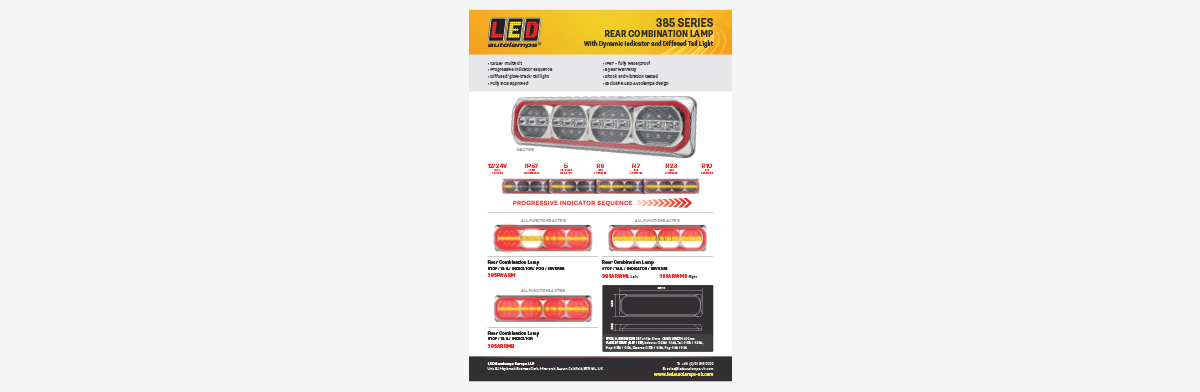Combining modern styling, innovative dynamic functionality, supreme durability and efficient LED technology, the exclusively designed 385 Series Rear Combination Lamps have set a new industry benchmark for excellence.