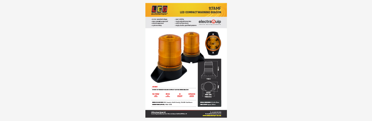 LED Autolamps is proud to introduce the exclusively designed 117AMF LED Compact Warning Beacon - the latest product release under our electraQuip brand.