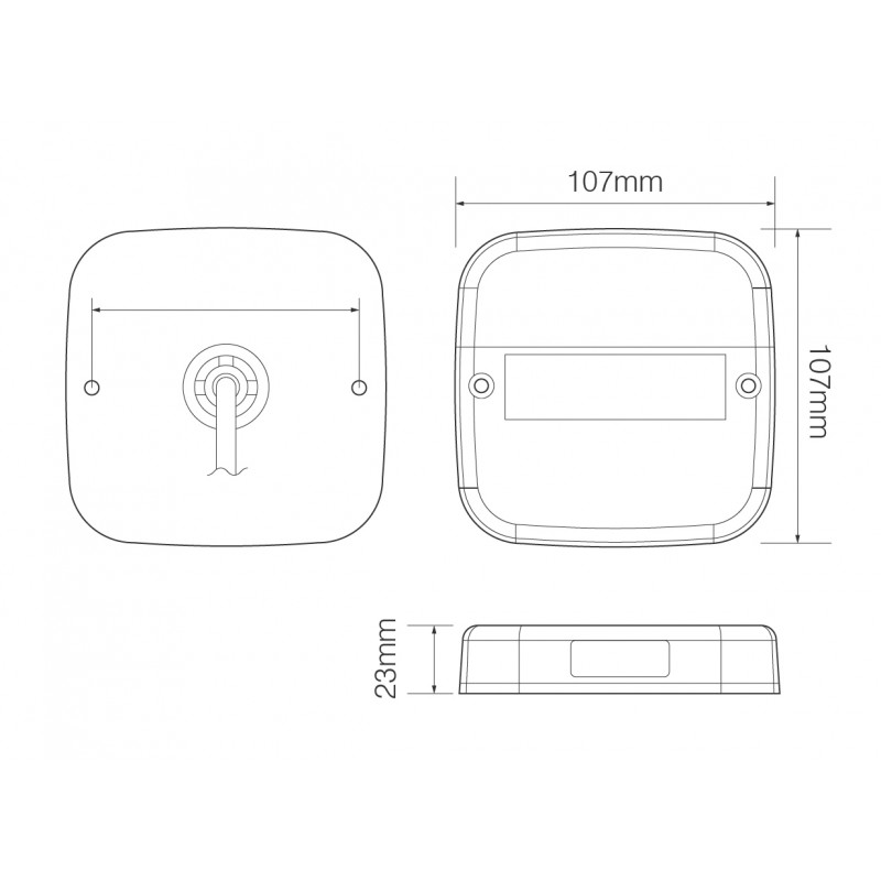 Dimensions: 107mm x 107mm x 23mm